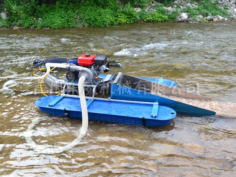 該設(shè)備抽沙系統(tǒng)采用新型結(jié)構(gòu),原料抽取過程中物料不流經(jīng)泵組,不用考慮泵和葉輪的磨損;沙金重選裝置為我公司專門研發(fā)的橡膠選金墊,沙金提取效率高,可對(duì)毛細(xì)金、片狀金進(jìn)行回收;適用于中小型礦場(chǎng)、河道、小溪淘金、探礦作業(yè);