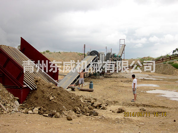 挖斗洗砂機(jī)工作時(shí),電機(jī)通過(guò)三角帶、減速機(jī)、齒輪減速后帶動(dòng)上料機(jī),均勻給料到滾篩進(jìn)行篩分,合格產(chǎn)品經(jīng)過(guò)溜槽進(jìn)入洗槽中,此時(shí)鏈斗裝置的動(dòng)力系統(tǒng)帶動(dòng)四角輪緩慢轉(zhuǎn)動(dòng),在鏈斗的帶動(dòng)下翻滾,并互相研磨,除去覆蓋砂石表面的雜質(zhì),同時(shí)破壞包覆砂粒的水汽層,以利于脫水;同時(shí)加水,形成強(qiáng)大水流,及時(shí)將雜質(zhì)及比重小的異物帶走,并從溢出口排出,完成清洗作用。干凈的砂石由挖斗提起,砂石從上四角輪倒入出料槽,完成砂石的清洗作用。