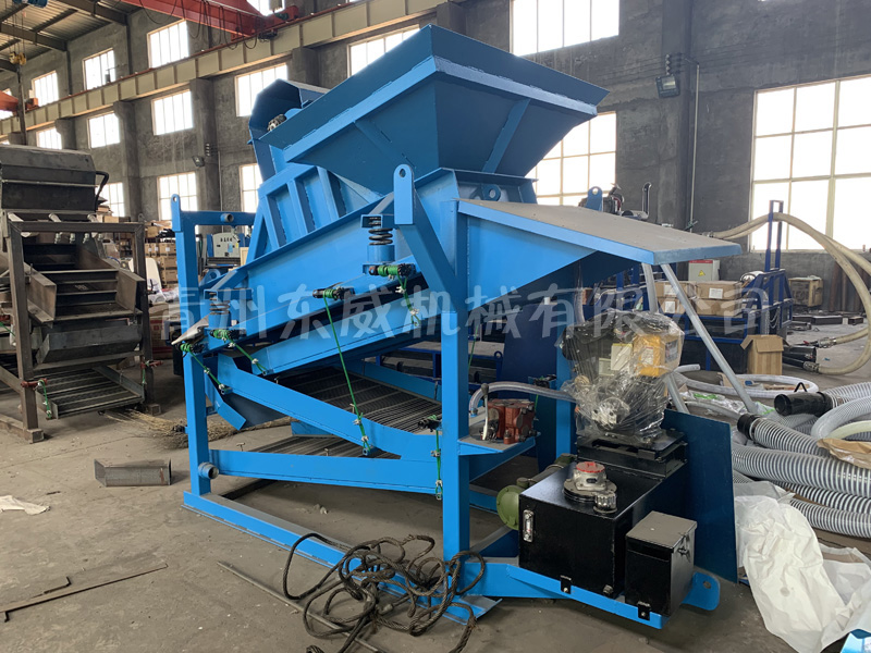 振動式選金機是一個緊湊型、可移動的整體結(jié)構(gòu)。頂部為篩條部分,可以將大塊物料隔除,同時物料落入二次篩分機構(gòu),充分篩分后,高壓力水將沙子沖入溜槽選金。該選金機結(jié)構(gòu)金緊湊、操作簡單、低運行成本。明顯比市場上其它選金設(shè)備有優(yōu)勢,無需豐富的選金經(jīng)驗即可操作。
