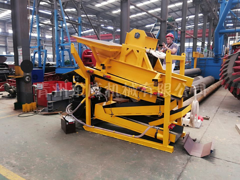 振動式選金機是一個緊湊型、可移動的整體結構。頂部為篩條部分,可以將大塊物料隔除,同時物料落入二次篩分機構,充分篩分后,高壓力水將沙子沖入溜槽選金。該選金機結構金緊湊、操作簡單、低運行成本。明顯比市場上其它選金設備有優(yōu)勢,無需豐富的選金經(jīng)驗即可操作。