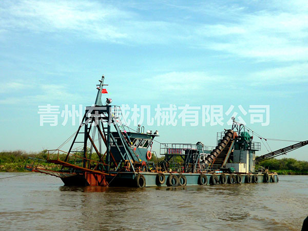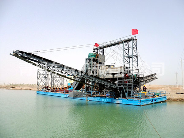 鏈斗式挖沙船可根據(jù)客戶性能要求及工礦作業(yè)特點(diǎn)設(shè)計制造。物料挖掘出來并由輸送機(jī)或輸送泵輸送至岸邊、運(yùn)沙船的功能;浮體采用橫骨架式分體箱形結(jié)構(gòu),轉(zhuǎn)運(yùn)時可拆裝后裝車。裝有定位設(shè)備、鏈斗挖掘裝置、橋架升降裝置及皮帶輸送機(jī)等。水下桿是由安裝在浮體上的絞車實現(xiàn)升降,砂石料通過鏈斗裝置挖掘上來,由輸送機(jī)或輸送泵輸送到岸上或運(yùn)沙船。