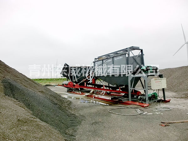 物料首先由裝載機(jī)上料至料倉(cāng),通過(guò)料倉(cāng)底部的給料機(jī)給料到水洗滾筒內(nèi),物料進(jìn)入滾筒后經(jīng)滾動(dòng)、摩擦沖洗,雜質(zhì)及污水由廢水口流出,成品料經(jīng)滾筒清洗后,輸送機(jī)輸送至料堆。