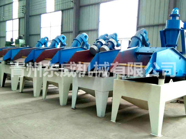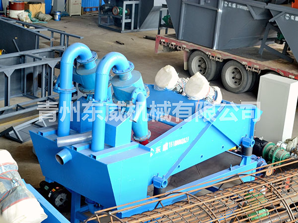 目前現(xiàn)有的洗沙生產(chǎn)線上,絕大部分采用濕法生產(chǎn)工藝,不論采用何種形式的洗砂機(jī),其大的缺點就是細(xì)沙流失嚴(yán)重,嚴(yán)重影響沙子的級配,造成級配不合理,細(xì)度模數(shù)偏粗,大大降低了機(jī)制砂的產(chǎn)品質(zhì)量。過多的細(xì)沙排放,還會造成環(huán)境污染。為解決上述問題,青州東威機(jī)械技術(shù)部門潛心研發(fā)了細(xì)沙回收機(jī)(細(xì)砂回收機(jī)),該細(xì)沙回收系統(tǒng)吸收國外先進(jìn)技術(shù),結(jié)合本土砂粉實際情況而設(shè)計的細(xì)沙回收設(shè)備。細(xì)沙回收機(jī)廣泛應(yīng)用于洗沙場、砂石骨料加工系統(tǒng)、玻璃原材料加工系統(tǒng)、人工制沙生產(chǎn)線、選煤廠粗煤泥的回收以及環(huán)保工程(泥漿凈化)等,可有效解決細(xì)沙回收問題。