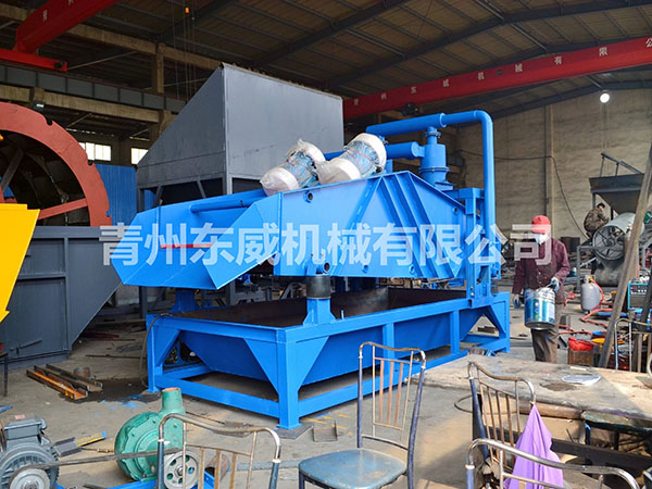 2、工作流程:洗砂機的成品物料直接進入脫水篩進行脫水,洗砂機排出的泥漿水則進入該設(shè)備集水箱,經(jīng)由底部離心高壓抽沙泵抽至泥沙分離器進行分級濃縮,細沙經(jīng)沉沙嘴進入脫水篩,其他廢水、泥、粉、雜質(zhì)等通過泥沙分離器溢流口進入回水管路排出。